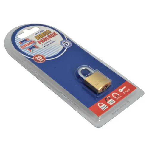 • Faithfull 20mm Brass Padlock (3 Keys)
